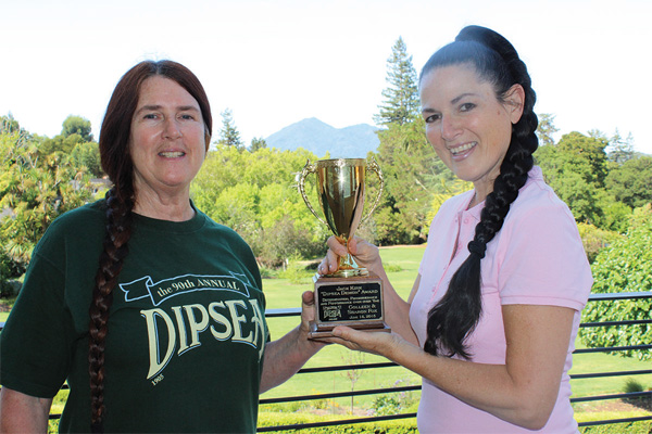 The Dipsea’s Red Tail Hawk Award, also known as the Jerry Hauke Perpetual Award, for “leadership, dedication and sportsmanship” was presented to Billie Post, the widow of Dipsea elite runner Steve Lyons. She competed in the race for 26 years and has transitioned into the post-race awards captain for the Dipsea.